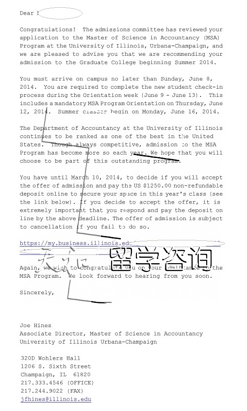 L同学,211学校经济学专业,转专业申请会计。GPA 3.35, TOEFL 100, GMAT 670。 申请人想在美国工作,所以选择申请会计学专业。在只有一门会计学课程的情况下,申请会计专业的选校受到很大局限。申请人的英语不是强项,因此在GMAT考了4次的情况下,只考出670分。申请人由于跨专业申请难度较大,自己本来希望申请的学校在40-80名,然而爱祖儿的案例经理用多个案例向申请人证明应该冲刺更好排名的学校,最终获得UIUC MSA 伊利诺伊香槟分校会计学硕士的录取。