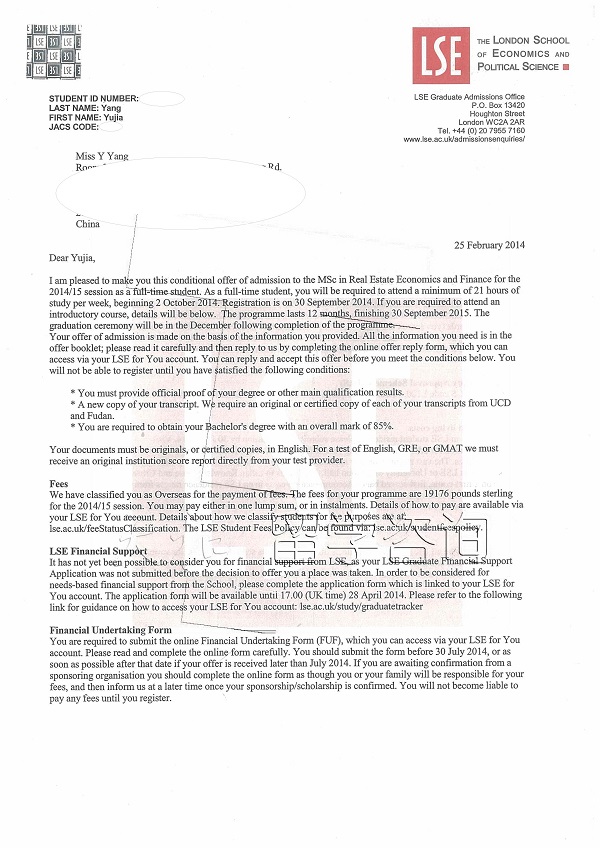 杨毓佳,复旦大学数理经济系,GPA 3.40,GRE 154+170,TOEFL 107。复旦大学2014fall申请竞争十分激烈,在杨同学加入爱祖儿的服务之后,为了弥补申请人GPA的弱势,爱祖儿的案例经理指导杨同学修读了一些课程来弥补GPA的短板,同时为杨同学量身定做了对申请结果最有利的申请策略。我们纠正了申请人原本打算做的实习项目,指导申请人进行若干更适合她申请策略的实习,申请人同时准备GRE考试进行刷分。临近申请,虽然GRE的分数还不甚理想,我们还是将申请目标定位英国LSE档次的学校。爱祖儿Case Manager的文书创作凸显了杨同学对于经济学的深刻认知,同时将她的实习经历、研究经历进一步提升整合,在文书中得以充分的体现,最终帮助申请人成功获得纽约大学经济学硕士(NYU MA in Economics) 录取、伦敦政经房地产经济与金融录取(LSE MSc in Real Estate Economics and Finance)、帝国理工风险管理与金融工程的录取。